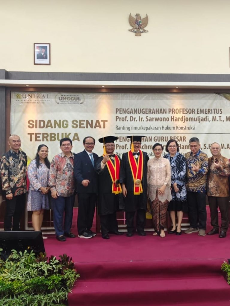 Profesor Sarwono Hardjomuljadi merupakan figur sentral dalam bidang hukum konstruksi internasional yang memiliki latar belakang pendidikan multidisiplin yang komprehensif, mencakup bidang teknik dan hukum. Dengan dedikasi selama puluhan tahun, beliau berhasil menapaki karier hingga ke level tertinggi sebagai Board Member di FIDIC (Geneva, Switzerland) pada periode 2019-2023 dan saat ini menjabat sebagai Director for Asia di DRBF (USA). Kepiawaiannya telah diakui secara global melalui berbagai penghargaan bergengsi, di antaranya Al-Matthews Award for Dispute Board Excellence (2022) di London, menjadikannya orang Asia kedua yang menerima gelar tersebut. Selain itu, beliau secara berturut-turut dinobatkan sebagai FIDIC Trainer of the Year pada tahun 2023 dan 2024, yang menegaskan perannya sebagai pelatih ahli kontrak konstruksi paling berpengaruh di dunia.